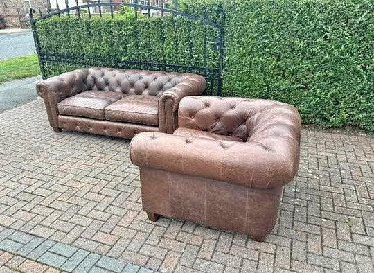Stunning John Lewis leather Chesterfield Suite consisting of x1 Large 3 Seater X1 large Club Chair